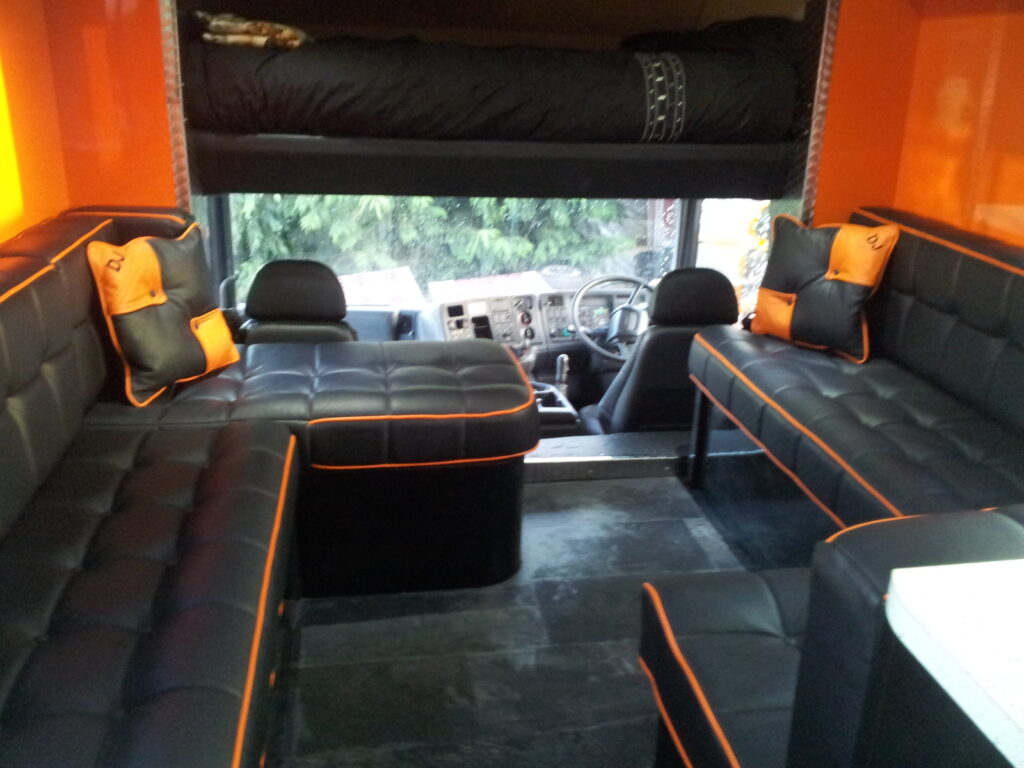Once the fabric has been chosen we will then discuss how you would like the design of the upholstery to be made , coverings , cab seats, curtains , tie backs , pelmets and scatter cushions.
